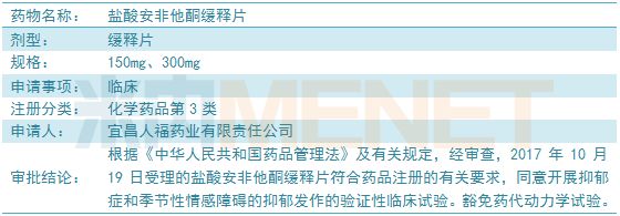 中國(guó)粉體網(wǎng)訊 近日,人福醫(yī)藥集團(tuán)股份公司(簡(jiǎn)稱:人福醫(yī)藥)控股子公司宜昌人福藥業(yè)有限責(zé)任公司(簡(jiǎn)稱:宜昌人福)收到國(guó)家藥品監(jiān)督管理局核準(zhǔn)簽發(fā)的鹽酸安非他酮緩釋片的《臨床試驗(yàn)通知書(shū)》。人福醫(yī)藥2018年6月20日披露鹽酸安非他酮緩釋片獲得美國(guó)FDA批準(zhǔn)文號(hào),累計(jì)研發(fā)投入約為130萬(wàn)美元。