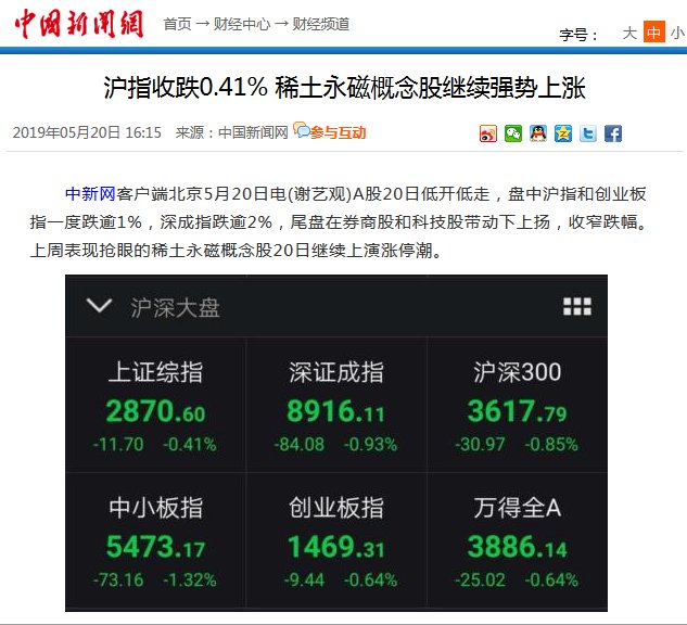 資訊5:滬指收跌0.41% 稀土永磁概念股繼續(xù)強(qiáng)勢上漲