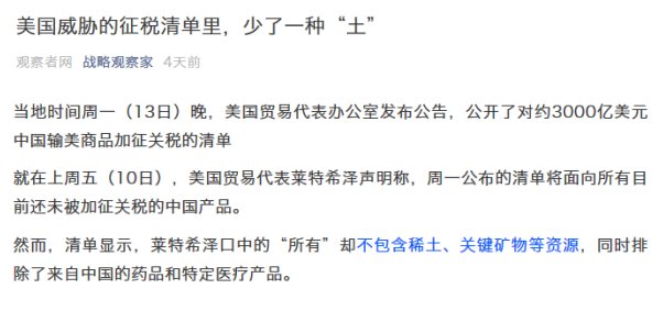 資訊4:自媒體“發(fā)現(xiàn)”未被加征關(guān)稅的那一種“土”