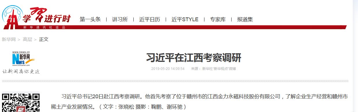 資訊1:國家最高領(lǐng)導(dǎo)人考察稀土產(chǎn)業(yè)