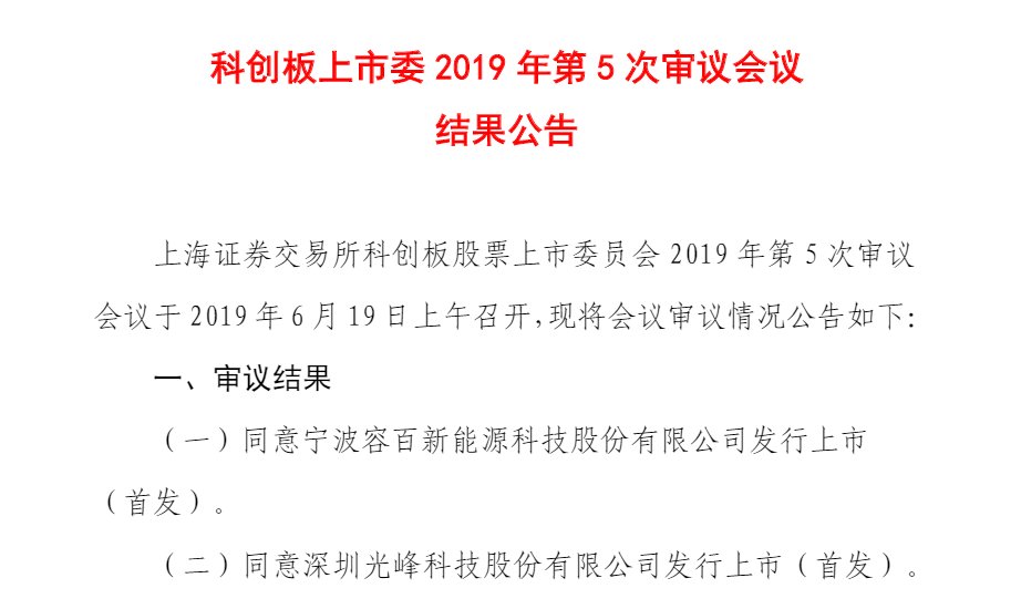 中國粉體網(wǎng)訊 6月19日晚間,科創(chuàng)板上市委披露了2019年第5次審議會議公告,公告顯示,科創(chuàng)板第五批上會企業(yè)容百科技、光峰科技2家公司全部過會。據(jù)新材料在線®了解,容百科技是鋰電池領域首家科創(chuàng)板過會企業(yè)。