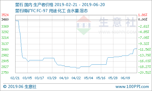 據(jù)統(tǒng)計,國內(nèi)螢石價格走勢維持高位,截止20日國內(nèi)螢石均價為3075元/噸,近期國內(nèi)螢石裝置開車正常,場內(nèi)礦山和浮選裝置正常開工,場內(nèi)螢石供應(yīng)略顯緊張,近期下游氫氟酸價格上漲,對于螢石市場按需采購,螢石市場價格走勢上漲。近期下游裝置開工情況一般,場內(nèi)螢石現(xiàn)貨供應(yīng)正常,終端下游接貨情況好轉(zhuǎn),導(dǎo)致市場價格走勢上漲。截止20日內(nèi)蒙古地區(qū)97螢石濕粉價格在2900-3100元/噸,福建地區(qū)97螢石濕粉商談主流在3000-3300元/噸,河南地區(qū)97螢石濕粉價格在2900-3200元/噸,江西地區(qū)97螢石濕粉價格在3000-3300元/噸,螢石價格走勢維持高位。