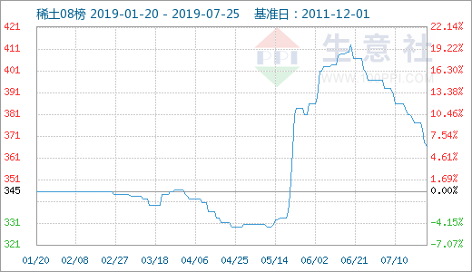 近期國(guó)家環(huán)保部門(mén)嚴(yán)查力度不減,對(duì)于稀土行業(yè)影響較大,稀土行業(yè)開(kāi)工情況較低,市場(chǎng)行情冷清。近期發(fā)改委舉行宏觀經(jīng)濟(jì)運(yùn)行情況新聞發(fā)布會(huì),國(guó)家發(fā)改委新聞發(fā)言人孟瑋就稀土方面的問(wèn)題回答記者提問(wèn)時(shí)表示,將在深入調(diào)研和科學(xué)論證的基礎(chǔ)上,抓緊研究出臺(tái)有關(guān)政策措施,切實(shí)發(fā)揮好稀土作為戰(zhàn)略資源的特殊價(jià)值,由于監(jiān)管效果日漸顯現(xiàn),稀土行業(yè)上游原礦資源供應(yīng)量萎縮,下游需求較差,稀土行業(yè)交易行情有所下滑。