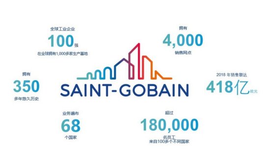 主要數(shù)據(jù):圣戈班在全球業(yè)務(wù)遍布68個國家,2018年,全球員工超過180000人,營業(yè)額近418億歐元。