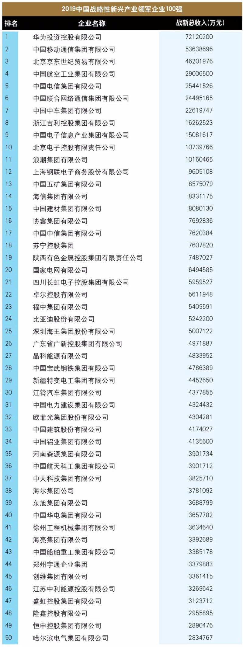 中國粉體網(wǎng)訊 9月1日,中國企業(yè)聯(lián)合會、中國企業(yè)家協(xié)會首次發(fā)布了中國戰(zhàn)略性新興產(chǎn)業(yè)領(lǐng)軍企業(yè)100強(qiáng)排行榜。榜單顯示,新一代信息技術(shù)、新材料成為入圍主力產(chǎn)業(yè),兩個領(lǐng)域分別有30家、23家企業(yè)入圍。