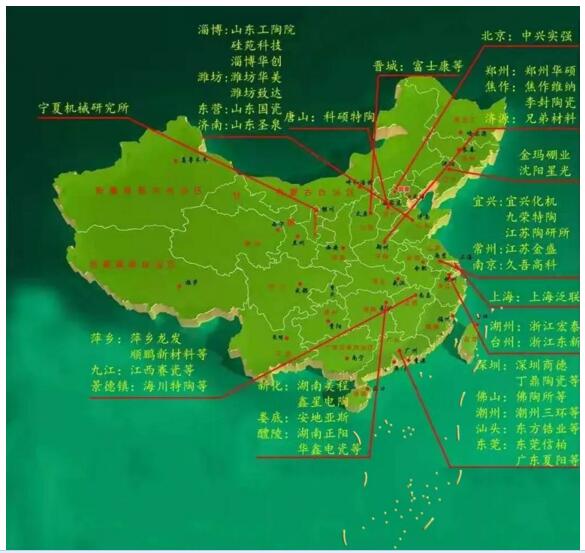 先進結(jié)構(gòu)陶瓷產(chǎn)業(yè)主要分布區(qū)域