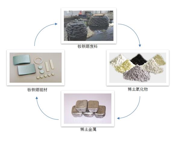 釹鐵硼永磁材料廣泛地應(yīng)用于冶金、化工、材料、航空航天、通訊、電子、汽車等國民經(jīng)濟(jì)的各個(gè)領(lǐng)域。由于目前的生產(chǎn)工藝及設(shè)備等限制因素,釹鐵硼永磁材料在生產(chǎn)和加工過程中,會產(chǎn)生30%左右的廢料;在運(yùn)輸方面,由于釹鐵硼廢料具有磁性,不能高空運(yùn)輸,只能集中收集和處理,這加大了釹鐵硼廢料回收的難度。