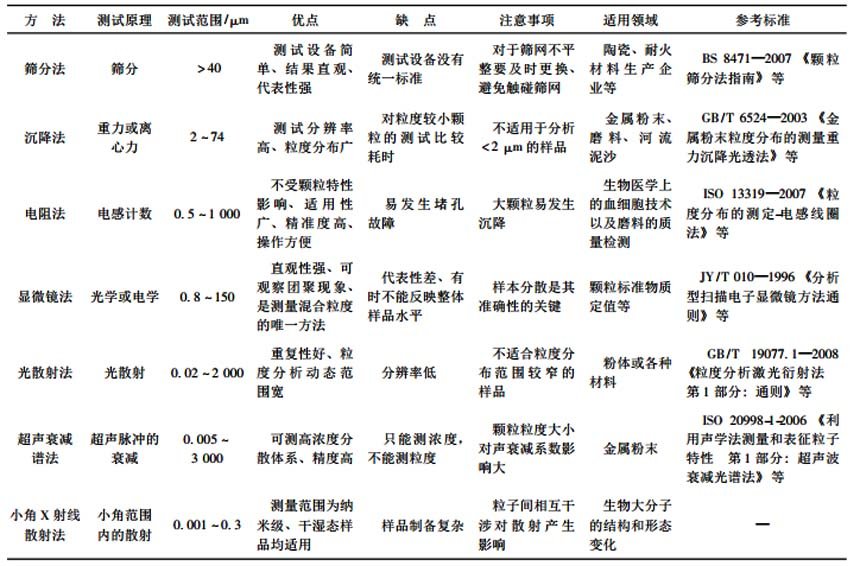 該方法的測試范圍0.8~150μm。