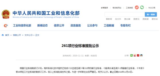 中國粉體網(wǎng)訊 據(jù)工信部11日消息,根據(jù)行業(yè)標(biāo)準(zhǔn)制修訂計(jì)劃,相關(guān)標(biāo)準(zhǔn)化技術(shù)組織已完成《水擊泄壓閥》等232項(xiàng)機(jī)械行業(yè)標(biāo)準(zhǔn)、《船用水減壓閥》1項(xiàng)船舶行業(yè)標(biāo)準(zhǔn)、《牛排》等28項(xiàng)輕工行業(yè)標(biāo)準(zhǔn)的制修訂工作。在以上標(biāo)準(zhǔn)批準(zhǔn)發(fā)布之前,工信部為進(jìn)一步聽取社會(huì)各界意見,將上述行業(yè)標(biāo)準(zhǔn)予以公示,公示截止日期為2019年12月10日。