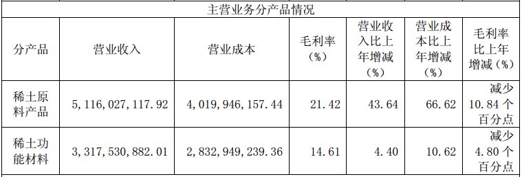 冶煉分離產(chǎn)能8萬噸/年、稀土金屬產(chǎn)能1萬噸/年,稀土原料產(chǎn)能位居全球第一。