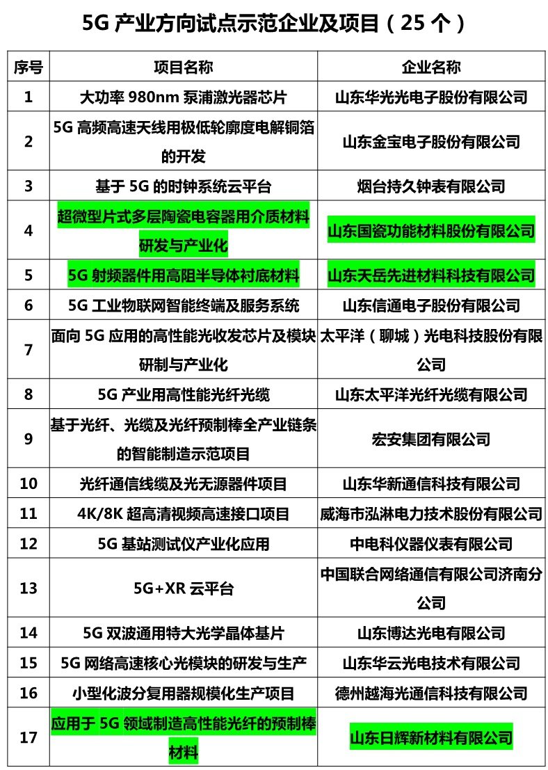 中國(guó)粉體網(wǎng)訊 近日,山東省工信廳發(fā)布公告稱,為貫徹落實(shí)《山東省人民政府辦公廳關(guān)于加快5G產(chǎn)業(yè)發(fā)展的實(shí)施意見的通知》,推動(dòng)山東省5G產(chǎn)業(yè)發(fā)展,加快構(gòu)建具有山東特色的5G產(chǎn)業(yè)生態(tài)體系,省工信廳開展了5G試點(diǎn)示范企業(yè)及項(xiàng)目遴選工作,經(jīng)各地市工信局及相關(guān)行業(yè)協(xié)會(huì)推薦,山東省工業(yè)和信息化廳組織專家評(píng)審論證,國(guó)瓷材料、山東天岳、日輝新材料等入選5G產(chǎn)業(yè)方向試點(diǎn)示范企業(yè)。