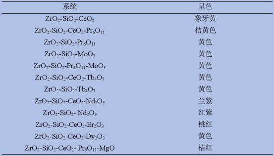 要使陶瓷顯示出彩色,往往需要往里面加入含過(guò)渡金屬或者稀土金屬的氧化物或其他化合物。經(jīng)研究,硅酸鋯基陶瓷顏料因耐高溫性、高化學(xué)穩(wěn)定性及呈色范圍寬等優(yōu)點(diǎn)而最具實(shí)用價(jià)值。