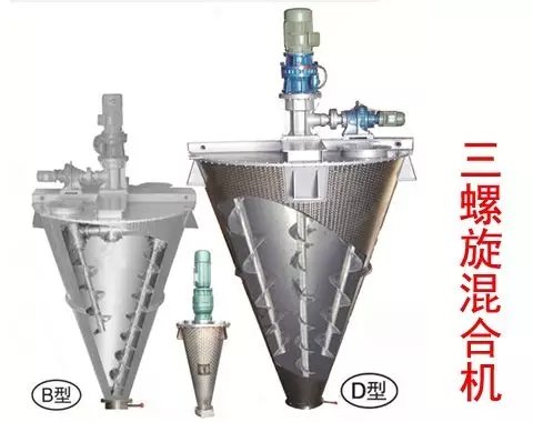 錐形三螺旋混合機(jī)(4m3以上):在原雙螺旋錐形混合機(jī)基礎(chǔ)上系統(tǒng)進(jìn)行創(chuàng)新改進(jìn),增加一條螺旋,混合故障率極低、采用兩條對稱排列螺旋及中間一條長螺旋順轉(zhuǎn),原長螺旋斜度大、壓力大、今縮短螺旋長度牢固,增加螺旋的強(qiáng)度,使得三條螺旋比現(xiàn)有的雙螺旋運(yùn)行更加的穩(wěn)定,螺旋越多,混合效果越明顯,混合精度更高,提高生產(chǎn)率,保證質(zhì)量,使設(shè)備壽命增長。采用該系列機(jī)提升混合效果,解決了用戶對特輕、特細(xì)物料難以混合均勻的困難,同時對一般物料速度、精度均有明顯提高,減少混合時間,具有節(jié)能意義,特別適用于大容積4m3以上機(jī)型的物料混合。