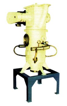 物料由加料口加入上筒體旁的回轉閥門輸送入分級室。在水平安裝的轉子旁分散、分級。粗粉甩至筒壁處向下移動在風柵處受二次空氣作用及中心管的一次空氣吹送。細粉再次脫離粗粉被送至轉子處進行分級,最終粗粉向下移動,由下筒體上的回轉閥排出機外,細粉穿過轉子葉片的間隙由排氣管送出機外,在捕集器中尾氣由風機放至大氣。