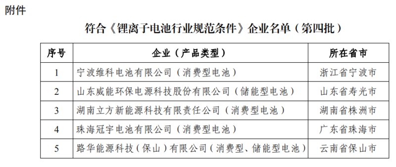 附件:符合《鋰離子電池行業(yè)規(guī)范條件》企業(yè)名單(第四批)