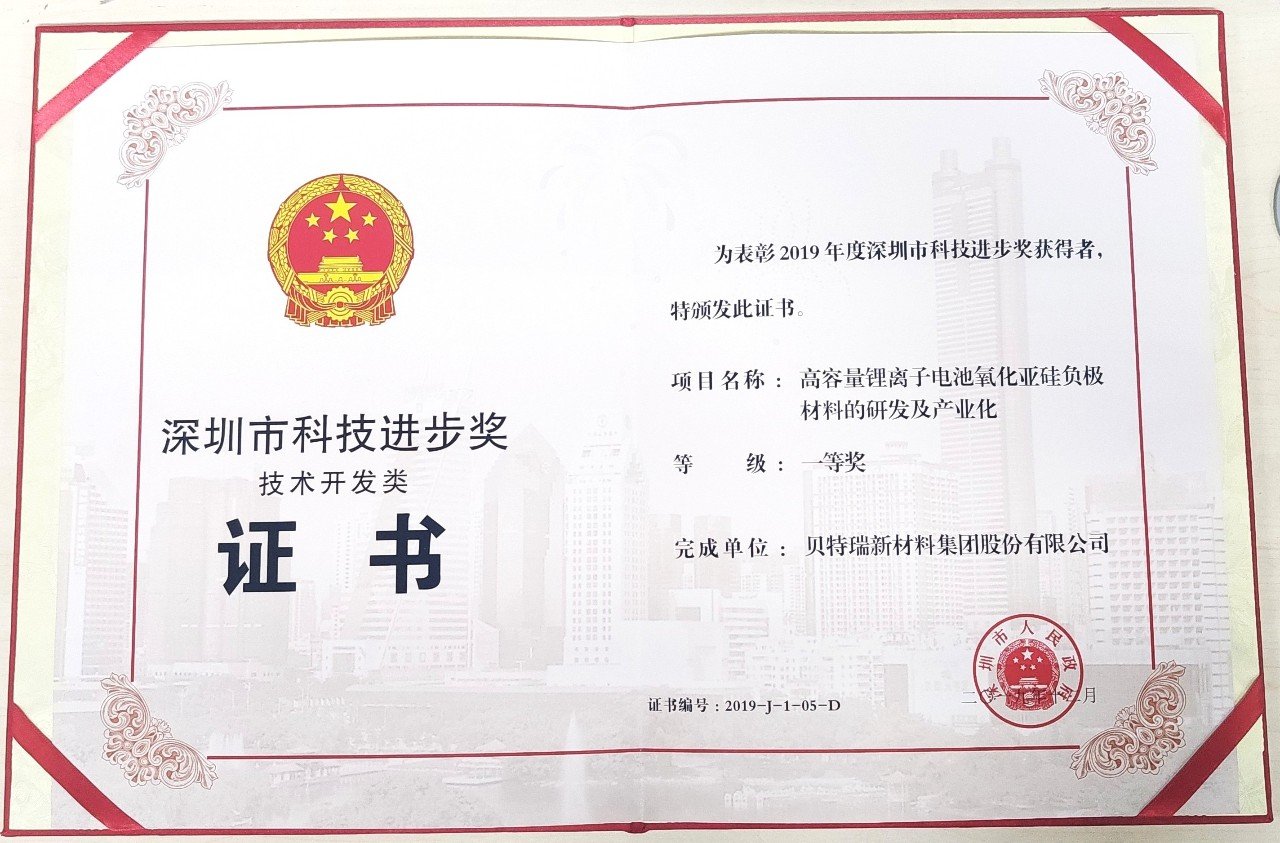 深圳市科學(xué)技術(shù)獎是深圳市科技創(chuàng)新的最高榮譽(yù),該獎項(xiàng)是貝特瑞集團(tuán)繼2018年度獲得中國專利優(yōu)秀獎之后的又一次重量級獎項(xiàng),進(jìn)一步體現(xiàn)了貝特瑞的科技創(chuàng)新精神,同時也是貝特瑞自主研發(fā)實(shí)力提升的一次重大成果展示。