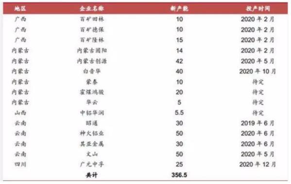 在宏觀環(huán)境的壓力下,對(duì)2020年供需給予相對(duì)保守的預(yù)期,前四季度新增氧化鋁產(chǎn)能850萬(wàn)噸,新增電解鋁產(chǎn)能僅有356.5萬(wàn)噸,新增電解鋁產(chǎn)能多向內(nèi)蒙古及西南地區(qū)轉(zhuǎn)移,多為年終建成投產(chǎn),因此,全年電解鋁產(chǎn)量釋放有限,氧化鋁產(chǎn)能將存在較大的過(guò)剩。2020年在無(wú)政策影響的情況下,氧化鋁供應(yīng)過(guò);?qū)⒊蔀槎ň,氧化鋁價(jià)格是否會(huì)在品種期貨上市后受資金面影響出現(xiàn)大跌的情況為目前最大未知數(shù)。