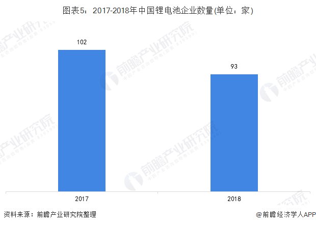 目前我國(guó)鋰電池行業(yè)內(nèi)95%企業(yè)為中小企業(yè),規(guī)模小,技術(shù)水平低,主要生產(chǎn)中低端鋰電池產(chǎn)品。2018年6月開(kāi)始實(shí)行的《關(guān)于調(diào)整完善新能源汽車推廣應(yīng)用財(cái)政支持政策的通知》通過(guò)補(bǔ)貼措施表明了對(duì)新能源汽車電池能量密度的更高要求,低端鋰電產(chǎn)能過(guò)剩逐步被淘汰。2018年,中國(guó)鋰電池企業(yè)數(shù)量為93家,較2017年有所下滑。