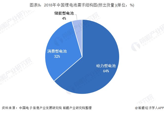 圖表9:2018年中國(guó)鋰電池需求結(jié)構(gòu)圖(按出貨量)(單位:%)
