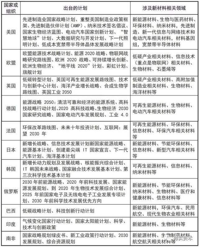 在全世界的范圍內,新材料的創(chuàng)新研發(fā)都得到高度重視,紛紛制定新材料發(fā)展規(guī)劃,在全面開發(fā)研究的基礎上,在市場和產(chǎn)業(yè)環(huán)境等不同層面出臺相應的政策,全力提升新材料的研發(fā)及產(chǎn)業(yè)水平。