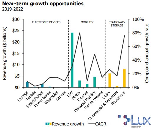 短期內(nèi)MHDVs和住宅存儲(chǔ)是增長(zhǎng)最快的應(yīng)用而LDVs仍是最大的市場(chǎng)