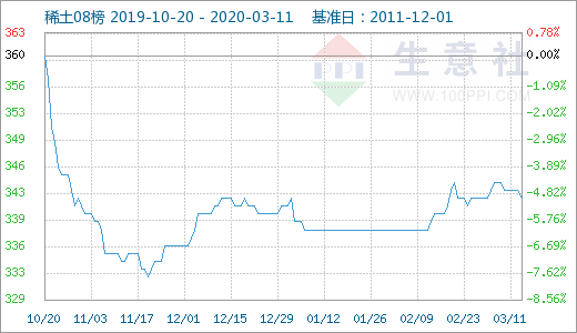 稀土市場(chǎng)中重稀土價(jià)格走勢(shì)仍有所上漲,國(guó)內(nèi)重稀土市場(chǎng)供應(yīng)正常,重稀土進(jìn)口貨源減少,緬甸單方面關(guān)閉通關(guān)口岸,國(guó)內(nèi)供應(yīng)有所減少,國(guó)內(nèi)重稀土價(jià)格走勢(shì)小幅上漲。近期永磁需求變化不大,加之開(kāi)采指標(biāo)較2019年有所上漲,鐠釹系列產(chǎn)品行情走勢(shì)下滑,場(chǎng)內(nèi)供應(yīng)正常,輕稀土近期需求一般,市場(chǎng)價(jià)格小幅走低。稀土市場(chǎng)價(jià)格震蕩與全國(guó)范圍內(nèi)的環(huán)保督察有關(guān),稀土生產(chǎn)具有特殊性,尤其是部分產(chǎn)品有輻射危害使得環(huán)保監(jiān)管趨嚴(yán)。在環(huán)保嚴(yán)查下,廠家合理控制銷售,但是近期下游需求變化不大,大部分稀土價(jià)格走勢(shì)穩(wěn)定為主。