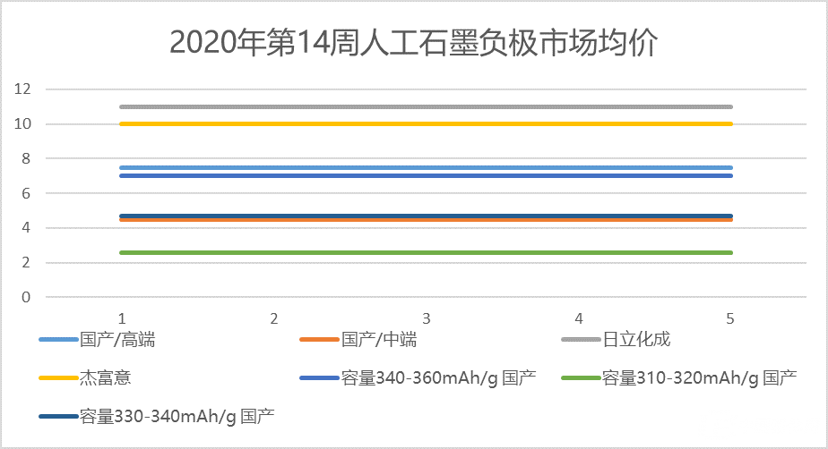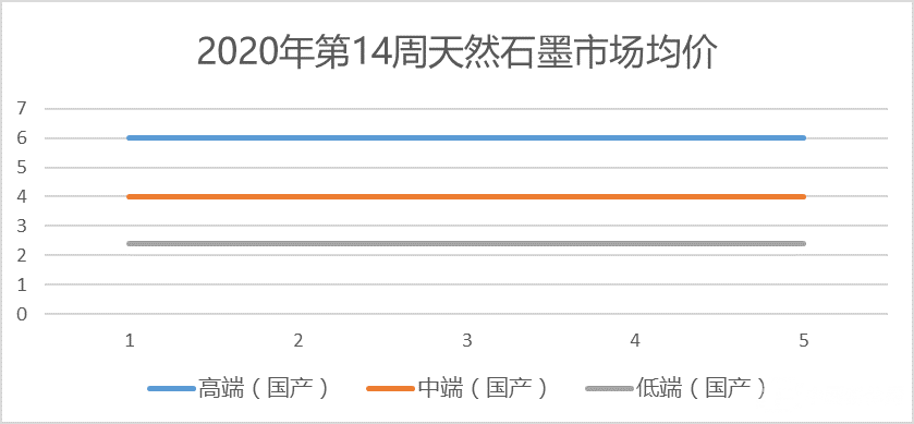 第14周天然石墨市場均價與上周基本持平,具體均價:高端(國產(chǎn))6萬/噸,中端(國產(chǎn))4萬/噸,低端(國產(chǎn))2.4萬/噸。