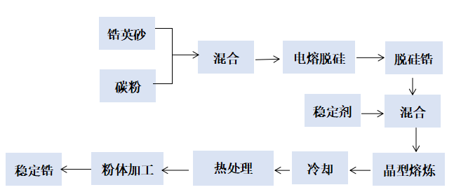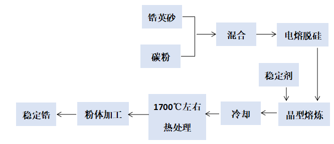 制備電熔穩(wěn)定氧化鋯的一次熔煉法工藝流程