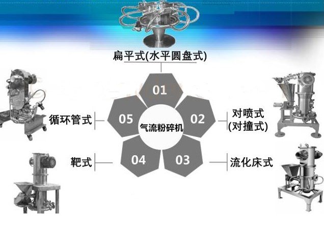 常見的氣流磨類型有扁平式氣流粉碎機(jī)、靶式氣流粉碎機(jī)、循環(huán)式氣流粉碎機(jī)、流化床式氣流粉碎機(jī)、對(duì)沖式氣流粉碎機(jī)等5大類。具體內(nèi)容請(qǐng)閱讀:氣流粉碎,你必須知道的5點(diǎn)內(nèi)容!