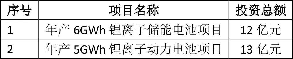 根據(jù)協(xié)議,億緯動力擬投資12億元建設(shè)年產(chǎn)6GWh的鋰離子儲能電池項目;擬投資13億元,建設(shè)年產(chǎn)5GWh的鋰離子動力電池項目。