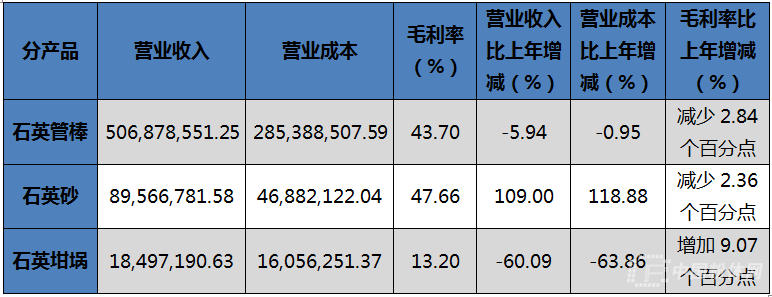 2019石英股份主營業(yè)務(wù)分產(chǎn)品情況(單位:元;幣種:人民幣)