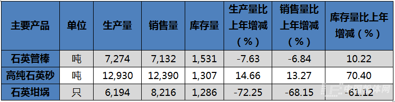 2019石英股份主要產(chǎn)品產(chǎn)銷量情況分析表