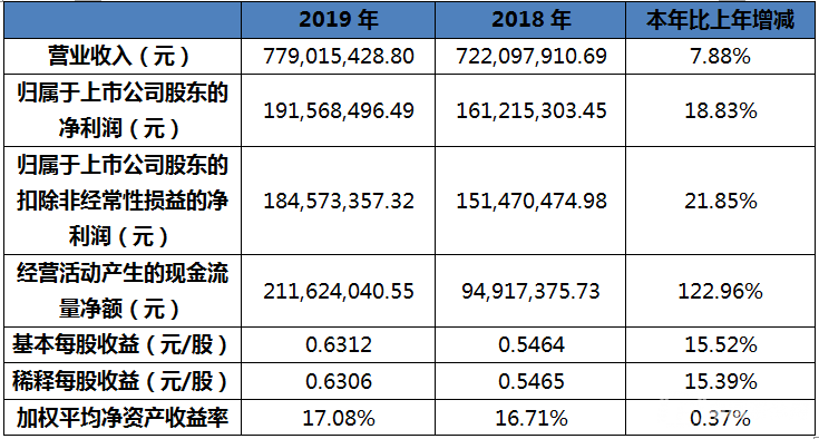 2019菲利華主要會計(jì)數(shù)據(jù)和財(cái)務(wù)指標(biāo)