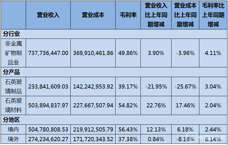 2019石英股份主營業(yè)務(wù)分行業(yè)情況(單位:元;幣種:人民幣)