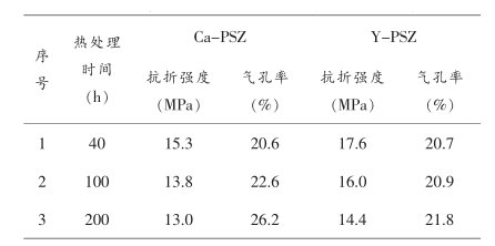 Ca-PSZ和Y-PSZ承燒板抗折強度及氣孔率