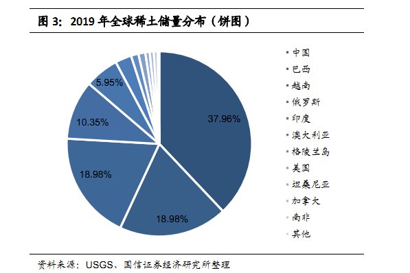中國(guó)粉體網(wǎng)訊 我國(guó)是全球稀土儲(chǔ)量最為豐富的國(guó)家,2019年我國(guó)稀土儲(chǔ)量達(dá)4400萬(wàn)噸,約占全球總儲(chǔ)量的38%,我國(guó)在中重稀土資源的儲(chǔ)量?jī)?yōu)勢(shì)尤為突出,查明儲(chǔ)量占全球總儲(chǔ)量的90%以上。2019年我國(guó)稀土礦產(chǎn)量13.2萬(wàn)噸ROE,約占全球總產(chǎn)量63%;冶煉分離產(chǎn)量15.5萬(wàn)噸ROE,約占全球總產(chǎn)量的88%。美國(guó)地質(zhì)調(diào)查局2020年報(bào)告,2019年全球稀土儲(chǔ)量為1.2億噸,其中中國(guó)儲(chǔ)量達(dá)4400萬(wàn)噸,占比達(dá)37.96%;其次為巴西和越南,均為2200萬(wàn)噸,占比各18.98%;再次為俄羅斯和印度,分別為1200萬(wàn)噸和690萬(wàn)噸,占比各10.35%和5.95%。