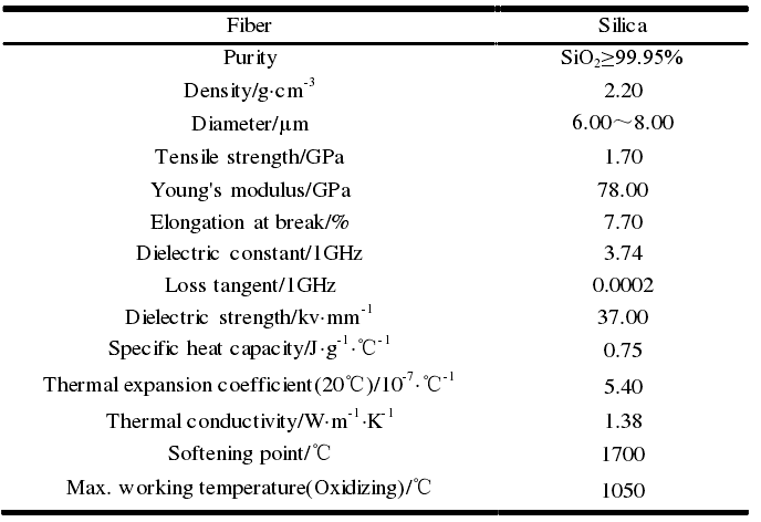 典型石英纖維的性能參數(shù)