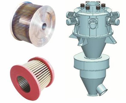 高速旋轉(zhuǎn)的分級(jí)輪產(chǎn)生強(qiáng)大的離心場(chǎng),大尺寸顆粒因離心力更大被甩出,小尺寸顆粒因離心力較小,被風(fēng)力“吸入”分級(jí)輪內(nèi)部并經(jīng)細(xì)粉腔、輸送管道進(jìn)入收集器被收集。