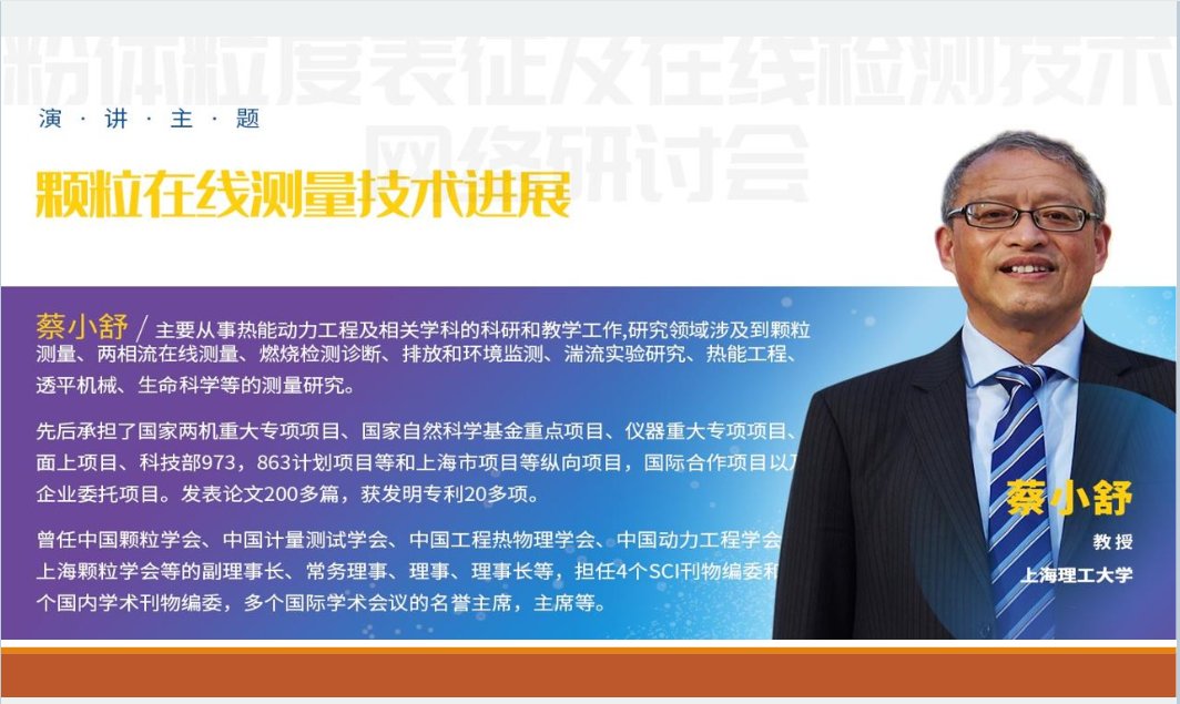 中國(guó)粉體網(wǎng)訊 2020年7月3日,中國(guó)粉體網(wǎng)聯(lián)合中國(guó)顆粒學(xué)會(huì)顆粒測(cè)試專委會(huì)、北京粉體技術(shù)協(xié)會(huì)共同舉辦了“粉體粒度表征及在線檢測(cè)技術(shù)網(wǎng)絡(luò)研討會(huì)”,來(lái)自上海理工大學(xué)的蔡小舒教授帶來(lái)了題為《顆粒在線測(cè)量技術(shù)進(jìn)展》的精彩報(bào)告。