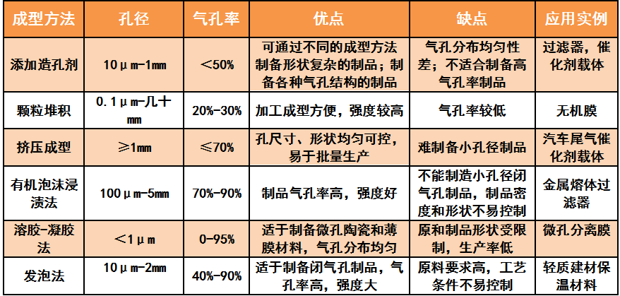 以上介紹的各種造孔工藝都各有特點(diǎn),制備的多孔材料的氣孔率、孔徑、氣孔形狀都有所不同,其使用環(huán)境也有所不同。若將其中幾種造孔工藝結(jié)合使用,便可以制備出具有高氣孔率和多種孔隙結(jié)構(gòu),具有綜合優(yōu)勢(shì)的多孔陶瓷制品。