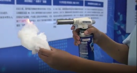 中國粉體網(wǎng)訊 1000攝氏度的高溫噴槍火焰,對準一小撮“棉被芯”發(fā)起挑戰(zhàn)。令人意外的是,“棉被芯”完勝,它不僅沒有燃燒起來,離開火焰后只剩微微的余溫。原來,這看起來像棉被芯的神奇材料是高性能氧化鋁纖維,它可是“高溫勁敵”。