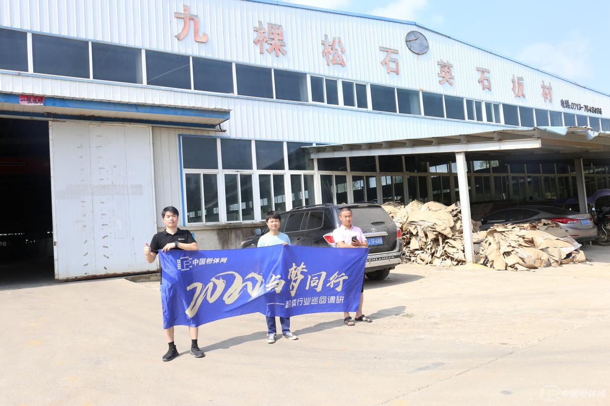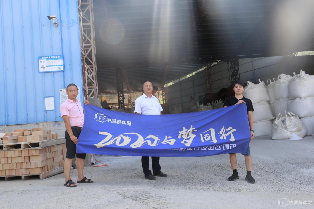 中國粉體網(wǎng)宋總(左一)同蘄春振杰梅總(中間)于廠前合影