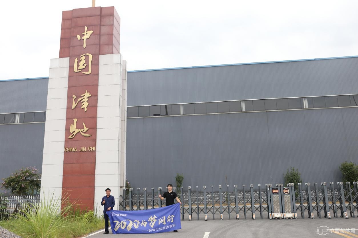 湖北津馳程董事長(zhǎng)(左一)與中國粉體網(wǎng)宋總在津馳大門口合影