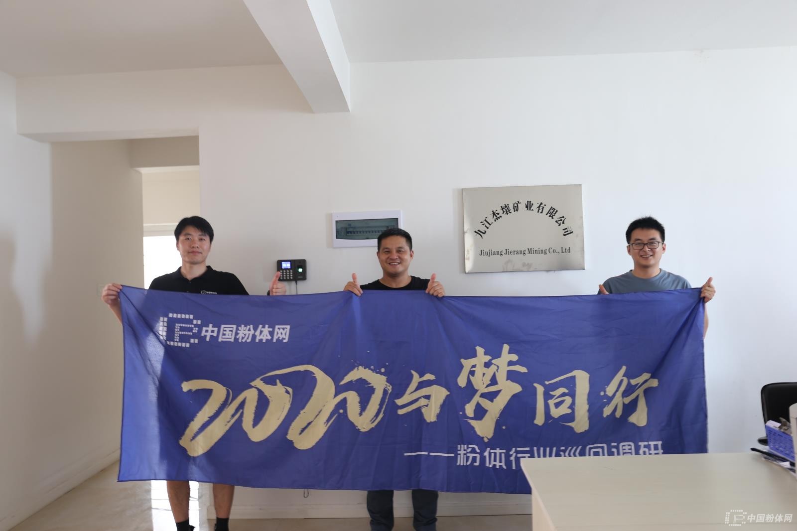 中國粉體網(wǎng)宋總與九江杰壤礦業(yè)謝總(右一)、黃總(右二)合影