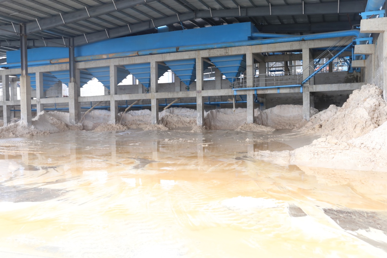 據(jù)李總介紹,公司新建2條水法石英砂生產(chǎn)線,1條鑄造石英砂生產(chǎn)線。進(jìn)駐產(chǎn)業(yè)園以前年產(chǎn)15萬(wàn)噸,進(jìn)駐后年產(chǎn)45萬(wàn)噸。其中精制石英砂40萬(wàn)噸、鑄造石英砂5萬(wàn)噸。目前公司現(xiàn)有4臺(tái)球磨機(jī),主要采用濕法工藝。相較于干法工藝,濕法工藝的投資成本要高很多,比如一臺(tái)污水處理機(jī)的價(jià)格就在1千萬(wàn)左右。