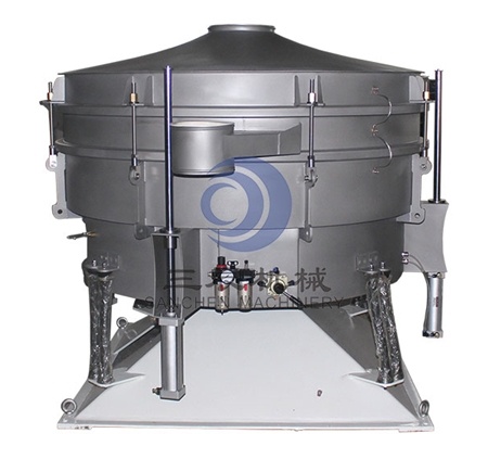 圓形搖擺篩的原理是瞬時(shí)運(yùn)動為沿徑向的位移和以此位移為軸的圓周運(yùn)動的合成(螺旋運(yùn)動)。即可調(diào)節(jié)偏心距的激振器產(chǎn)生了非線性三維運(yùn)動,物料也產(chǎn)生同樣的近似手動作業(yè)的運(yùn)動,從而達(dá)到篩分之目的。