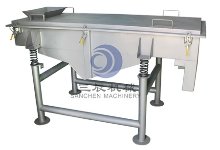 直線振動篩是利用振動電機(jī)作為振動動力源,單臺設(shè)備使用兩臺振動電機(jī),做同步異相運(yùn)動,激振力在水平位置相互抵消,在垂直位置相互疊加,從而使物料在篩網(wǎng)上被拋起,同時(shí)向前作直線運(yùn)動,物料從給料機(jī)均勻地進(jìn)入篩分機(jī)的進(jìn)料口,通過多層篩網(wǎng)產(chǎn)生數(shù)種規(guī)格的篩上物、篩下物、分別從各自的出口排出。具有耗能低、產(chǎn)量高、結(jié)構(gòu)簡單、易維修、全封閉結(jié)構(gòu),無粉塵溢散,自動排料,更適合于流水線作業(yè)。
