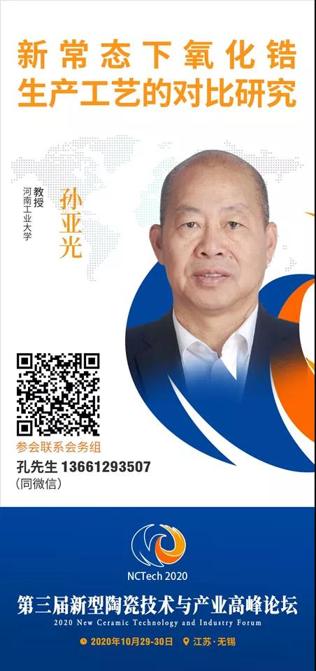 2020年10月29-30日,中國粉體網(wǎng)將在無錫舉辦“2020第三屆新型陶瓷技術(shù)與產(chǎn)業(yè)高峰論壇”。屆時,來自河南工業(yè)大學的孫亞光教授帶來題為《新常態(tài)下的氧化鋯生產(chǎn)工藝的對比研究》的報告,孫亞光教授將對氧化鋯濕法和火法生產(chǎn)工藝進行介紹,并對不同工藝的優(yōu)缺點進行歸納總結(jié)和對比分析,并重點對水熱法、共沉淀法納米氧化鋯的制備方法進行介紹。
