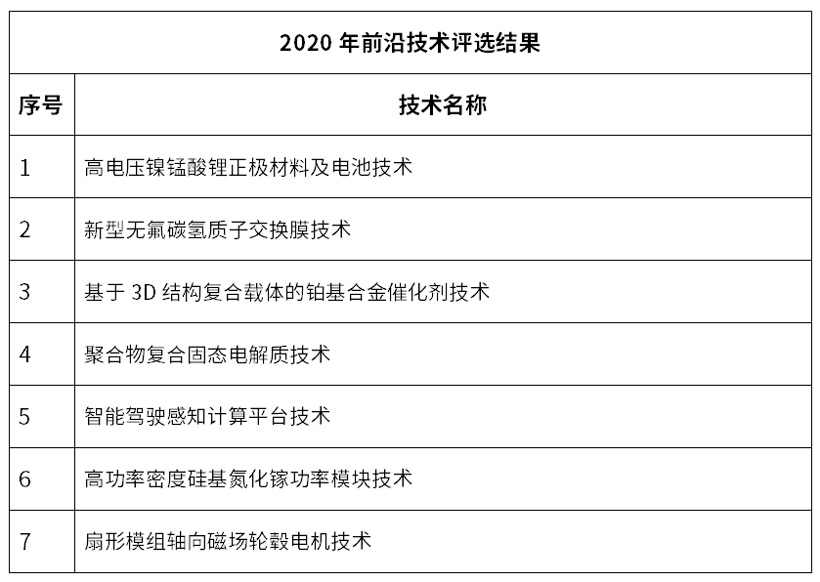 “前沿技術(shù)”則是指具有前瞻性、先導(dǎo)性和探索性的重大技術(shù),可成為新能源汽車未來產(chǎn)品技術(shù)更新?lián)Q代和推動產(chǎn)業(yè)發(fā)展的重要基礎(chǔ)性技術(shù)。以下為評選結(jié)果: