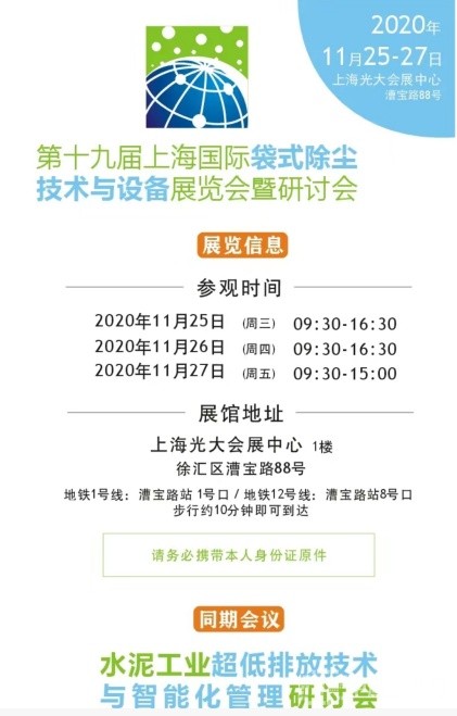 第十九屆上海國(guó)際袋式除塵技術(shù)與設(shè)備展覽會(huì)暨研討會(huì),將于2020年11月25-27日在上海光大國(guó)際會(huì)展中心西館(上海漕寶路88號(hào))舉行。屆時(shí),在同期舉行的水泥工業(yè)超低排放技術(shù)與智能化管理研討會(huì),蘇州協(xié)昌環(huán)?萍脊煞萦邢薰高級(jí)工程師王樹(shù)玲將作“煙塵治理袋式除塵運(yùn)行管理云平臺(tái)智能運(yùn)維技術(shù)及應(yīng)用”的主題報(bào)告。